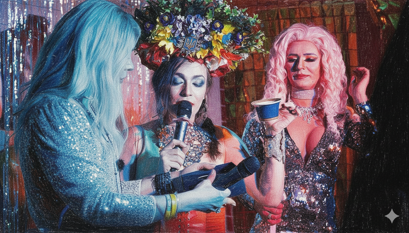 На початку повномасштабного вторгнення герої об’єдналися, щоб організувати благодійне дрег-шоу і зібрати кошти для українських захисників. У цей момент дрег перестає бути лише розвагою — він перетворюється на інструмент спротиву, спосіб зберегти людяність, голос і радість у часи війни. Саме цю трансформацію і намагається зафіксувати фільм.