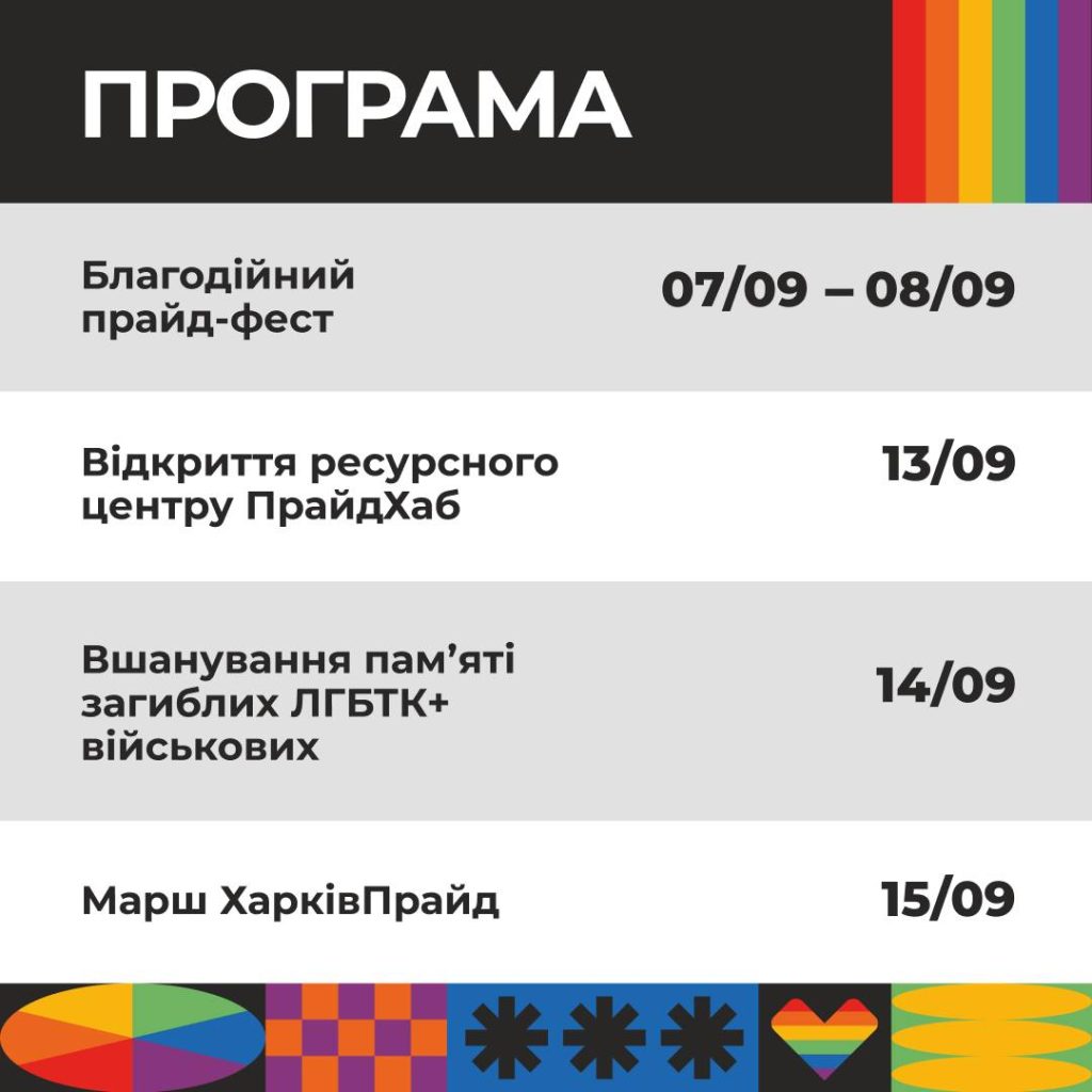 Організаторки та організатори ХарківПрайд 2024 запрошують містянок і містян на такі події: