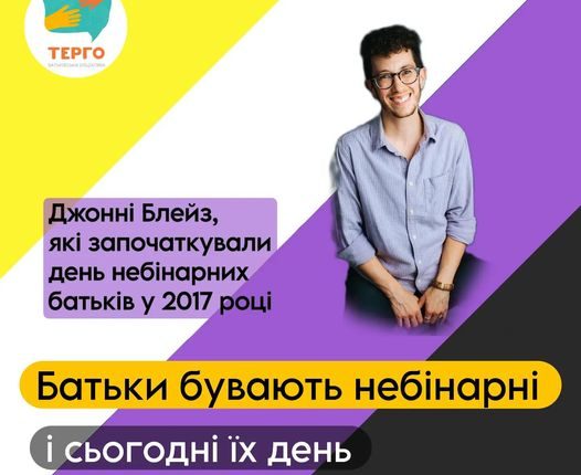 Небінарні педагог і виконавець Джонні Блейз започаткували День небінарних батьків у 2017 році. Вони наголошують, що, будучи батьками, небінарним людям багато в чому важко, і вони стикаються з труднощами, про які варто казати. «Коли ви небінарні, вам часто доводиться вибирати щось з бінарної системи: між чоловічим чи жіночим відділами у лікарні, між Днем матері чи Днем батька» – каже Джонні.