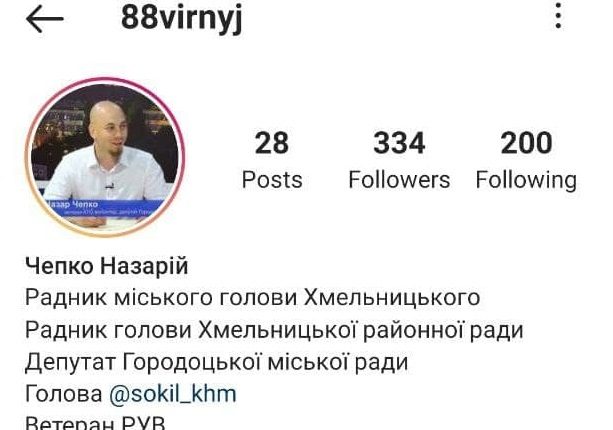 Одним из таких был и Назарий Чепко. Он оставил комментарий со страницы под ником 88virnyj, в описании которой указано, что человек работает советником городского головы, советником Хмельницкого районного совета и депутатом Городокского городского совета.