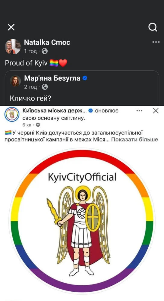 2 червня Київська міська державна адміністрація у своїх соцмережах ненадовго оновила головне фото, додавши до герба столиці кольори веселки, які є міжнародним символом ЛГБТ-людей. Там пояснили, що в червні Київ вирішив долучитися до загальносуспільної просвітницької кампанії в межах Місяця гордості.