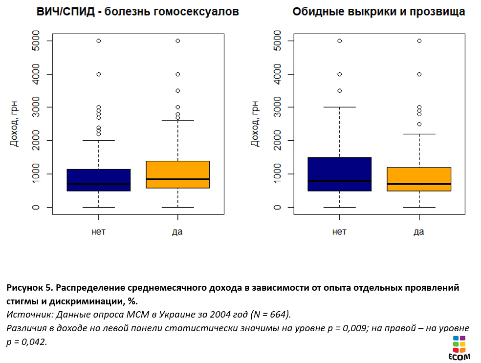 Несмотря на это, отдельные проявления стигмы и дискриминации МСМ значимо связаны с большей вероятностью быть безработным, и, возможно, даже с меньшим доходом. Речь идет как о непосредственном увольнении и препятствовании карьерному росту, так и об опыте оскорблений из-за сексуальной ориентации.