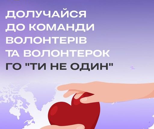 ГО “Ти не один” запрошує долучитися до команди волонтерів та волонтерок