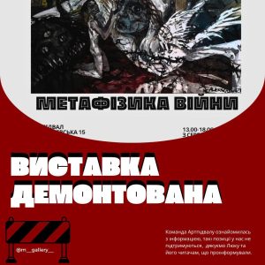 Наприкінці червня в Артпідвалі Харківської муніципальної галереї мала відкритись експозиція живопису в стилі мозаїчного панно “Метафізика війни” молодого художника Олексія Александрова. У своїх картинах автор зображував людські почуття та хаос під час воєнних дій. Але 24 червня, коли виставка була вже повністю змонтована, організатори ухвалили рішення про демонтаж експозиції й офіційно перепросили публіку за розміщення картин Александрова в стінах інституції.
