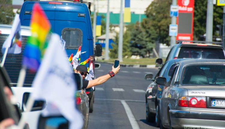 Более 20 автомобилей проехали колонной по проспекту Гагарина г. Харькова, чтобы привлечь внимание к проблеме ограничения прав людей из разных социальных групп, в том числе и ЛГБТ+ сообщества.