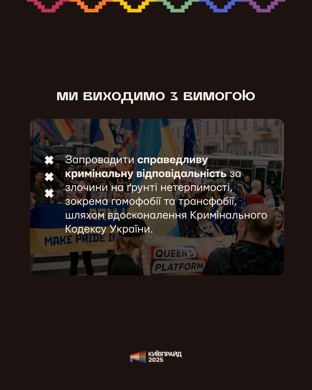 Основні вимоги Маршу рівності КиївПрайд 2025: