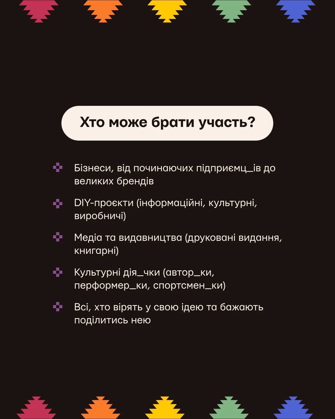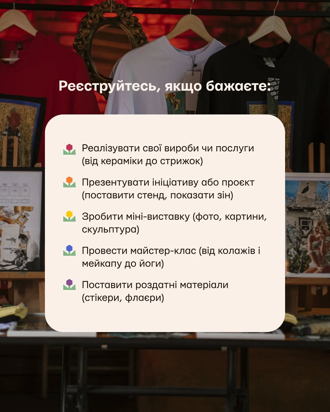 “На своїх столиках ви зможете розмістити підтримку і солідарність, показати себе та те, що ви робите. Як сучасний бізнес, ви зможете реально долучитись: до простору, до дискурсу, до дії. Бо саме так будується лояльна авдиторія бренду та локальна економіка солідарності. Це про реальні зв’язки.”