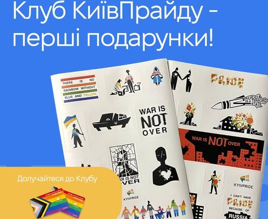 Клуб КиївПрайду відмічає першу велику дату – три місяці! І, як і обіцяли, ми відправляємо подарунки тим, хто з нами з самого початку і підтримує діяльність організації невеликими щомісячними донатами. Ці вінілові стікерпаки скоро з’являться у нашому магазині, і ви зможете придбати їх, а також нові піни зі слоганами цьогорічного українського прайд-літа.