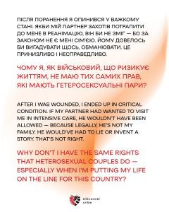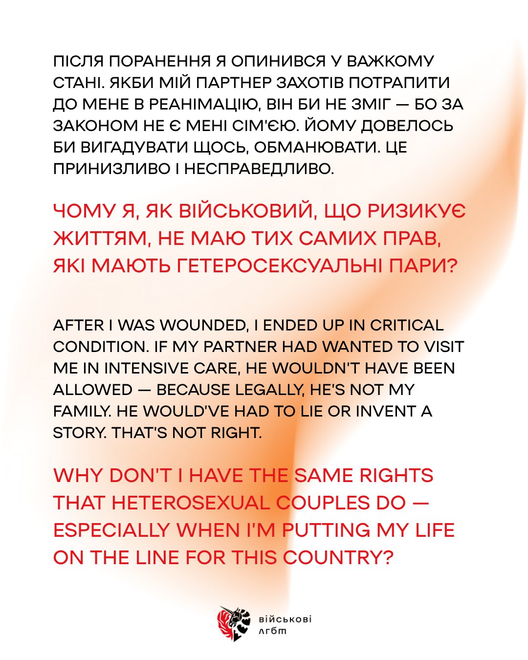 «Кожна історія наближає нас до рівних прав. ЛҐБТІК+ військові теж отримують поранення, захищаючи нашу землю», — йдеться в заяві організації.