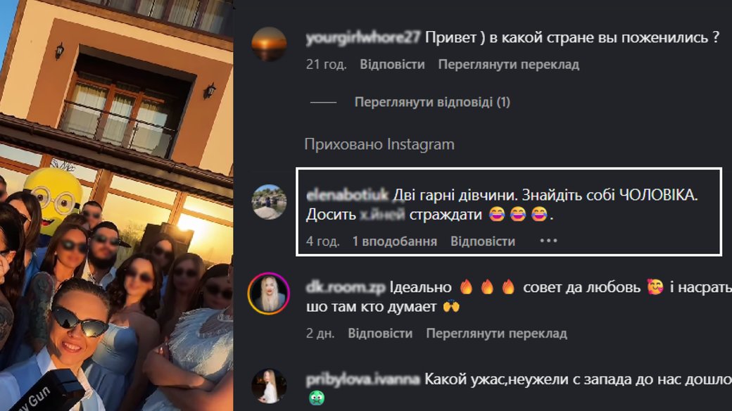 Позитивні коментарі людей до допису про весілля Валерії Головатенко та Анастасії Калашник. Скриншот зі соцмереж партнерок