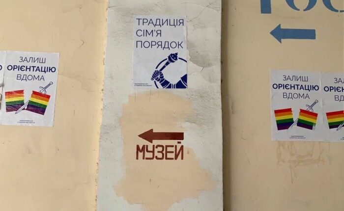 Офис Ассоциации ЛГБТ “Лига” в Одессе раз обклеили гомофобными открытками