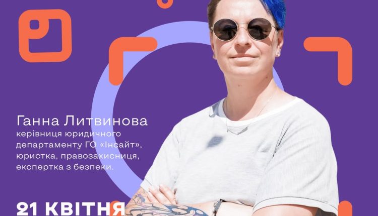 🎙 Експертка воркшопу: Ганна Литвинова, керівниця юридичного департаменту ГО «Інсайт», юристка, правозахисниця, експертка з безпеки.