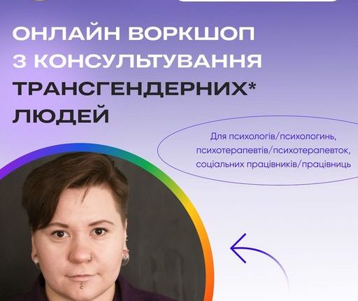 Запрошуємо психологів/психологинь, психотерапевтів/психотерапевток та соціальних працівників/працівниць приєднатися до онлайн воркшопу з консультування трансгендерних людей та отримати унікальну можливість розширити свої знання та практичні навички щодо роботи з представниками/представницями цієї спільноти!