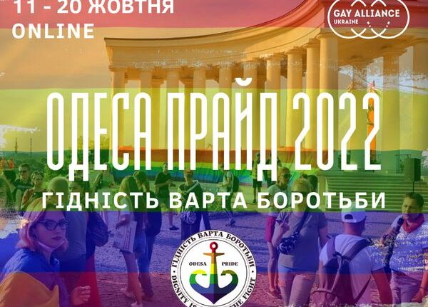 ВГО “Гей-альянс Україна” та Організаційний комітет щорічного фестивалю квір-культури офіційно анонсує формат цьогорічних заходів ОдесаПрайд-2022. В цьому році фестиваль проходитиме з 11 по 20 жовтня в онлайн-форматі під гаслом “Гідність варта боротьби” .