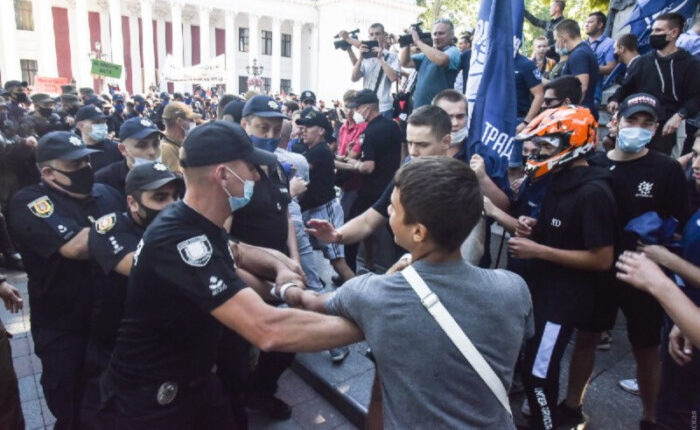 В конце августа в Одессе проходил фестиваль квир-культуры “ОдессаПрайд”, в рамках которого планировали устроить Марш равенства в формате цепи-поддержки. Однако правые напали на участников события и подрались с полицейскими. В частности, распылили в толпе слезоточивый газ и забросали людей яйцами. Участники рассказывали, что их били по голове и угрожали изнасилованием.
