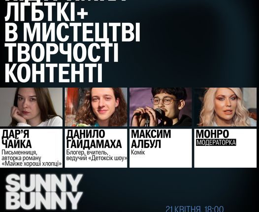 21 квітня в межах фестивалю Sunny Bunny «Точка опори ЮА» проведе панельну дискусію «Підтримка ЛҐБТКІ+ в мистецтві, творчості, контенті».