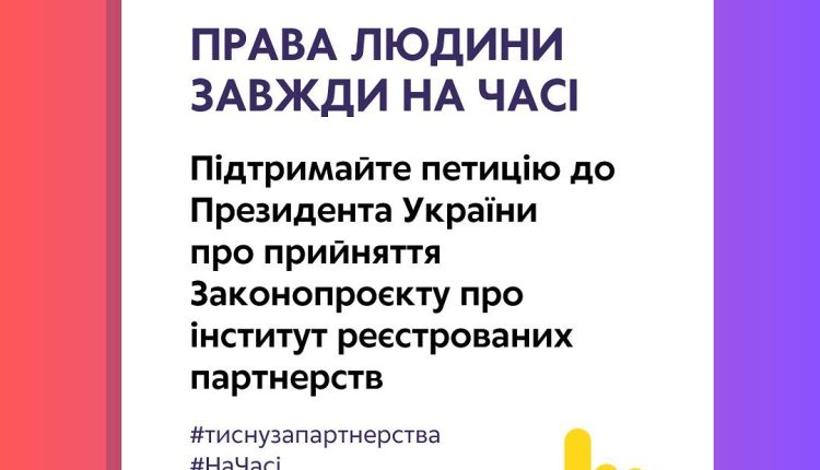 Підтримайте петицію до Президента України про прийняття законопроєкту №9103 про реєстровані партнерства для одностатевих і різностатевих пар