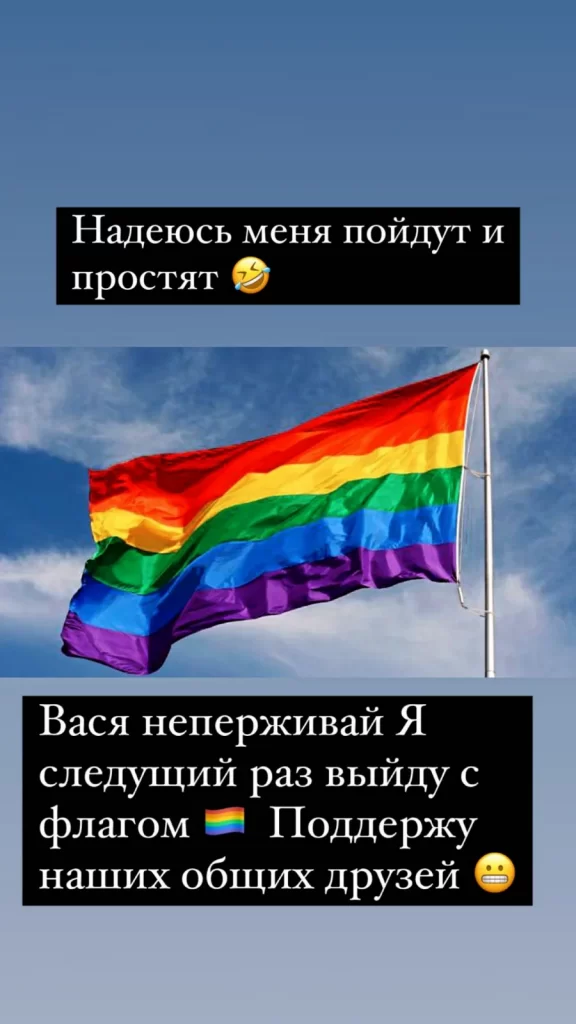 «Я в следующий раз выйду с радужным флагом. Поддержу наших общих друзей», — написал Редкач.