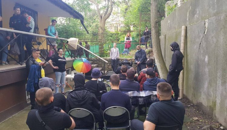 В тот день в Киеве в балаклавах с криками «тут собираются извращенцы» проникли на территорию правозащитного комьюнити-центра и сорвали запланированное там мероприятие. Никто из участников мероприятия не пострадал. Организаторы вызвали полицию, но праворадикалы успели уйти до того, как приехали правоохранители.