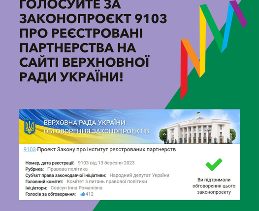 Проголосуйте за законопроєкт 9103 про інститут реєстрованого партнерства на сайті верхновної ради України!