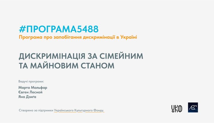 Youtube канал ЛеСТБ оприлюднив черговий випуск Програма5488. Цей випуск присвячено пітанню дискримінації за сімейним та майновим станом.