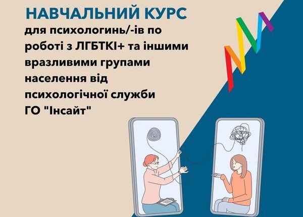 Психологічна служба “Інсайт” оголошує відкриття IV набору на навчальний курс 2022-23 р. для психологинь/-ів по роботі з ЛГБТКІ+ та іншими вразливими групами населення.