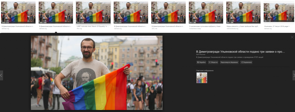 В заметке сайта Сибирь.Реалии (медиапроект Русской службы Радио Свобода) рассказывается про то, что власти Чукотки запретили ЛГБТ-активистам проводить “гей-парады” в регионе. Новость проиллюстрирована фотографией с киевского Марша равенства-2018 году, на которой изображен народный депутат Украины Сергей Лещенко.
