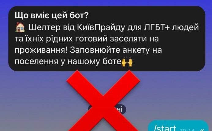 Шахраї створили фейковий бот, який збирає дані охочих заселитися в ЛГБТ+ шелтер вид КиївПрайд