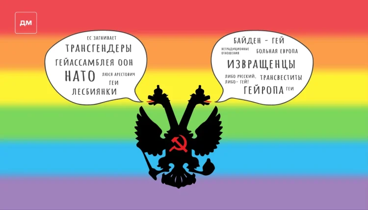 Те, що російське суспільство й влада гомофобні, — не новина. Наприклад, у 2013 році в Росії ухвалили закон про заборону так званої «пропаганди гомосексуалізму». Ця законодавча ініціатива начебто спрямована на «захист дітей від інформації, яка шкодить їхньому здоров’ю та розвитку». А ще, як пише у своїй колонці ЛГБТ-активістка Дзвенислава Щерба, гомофобію використовували для дискредитації опозиційних рухів. Тобто бути ЛГБТ-людиною в Росії — неприпустимо соромно, а відкритість можуть назвати так званою пропагандою, що взагалі є незаконним. Таке ставлення до ЛГБТ-людей пояснює, чому російська пропаганда використовує ознаку сексуальної орієнтації, щоб дискредитувати певних людей, організації чи держави.