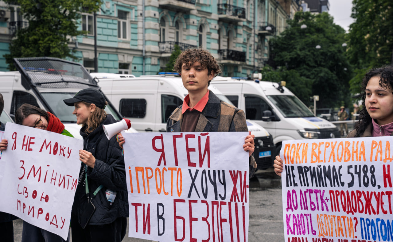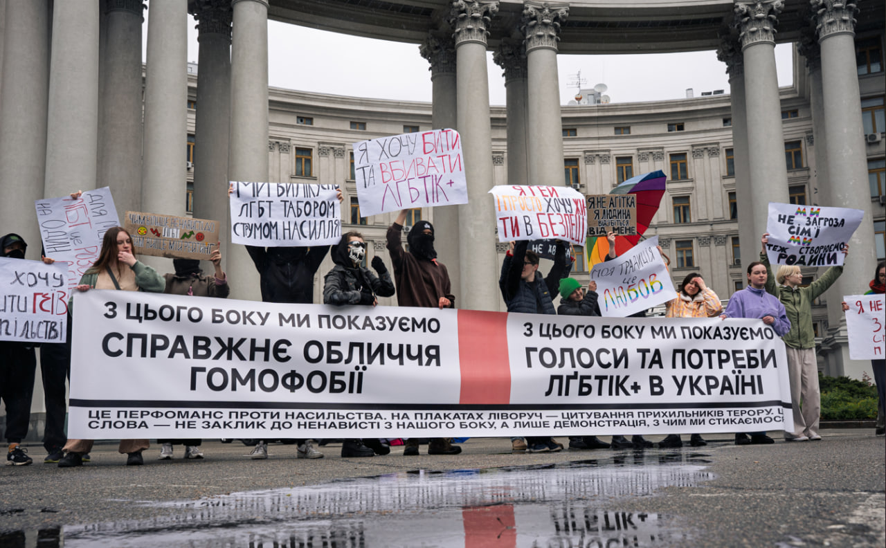 У суботу, 17 травня, в Києві відбулася мирна акція та перфоманс проти вуличних нападів на ЛҐБТІК+ в Україні. Захід присвятили боротьбі з насиллям проти ЛГБТ спільноти, та законопроекту 5488.
