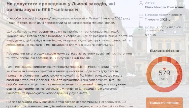 У Львові зареєстрували гомофобну петицію із закликом заборонити ЛГБТ-захід, запланований на 14 червня