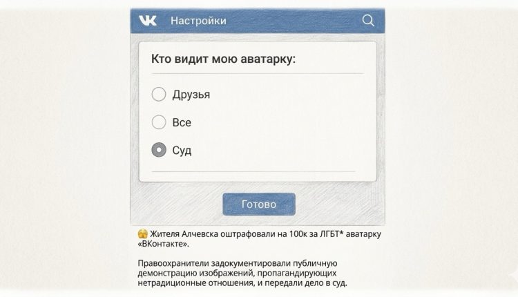 У місті Алчевськ, яке перебуває під окупацією з 2014 року, так званий «суд» виніс рішення про штраф у розмірі 100 тисяч рублів місцевому жителю через зображення на його сторінці в соціальній мережі.