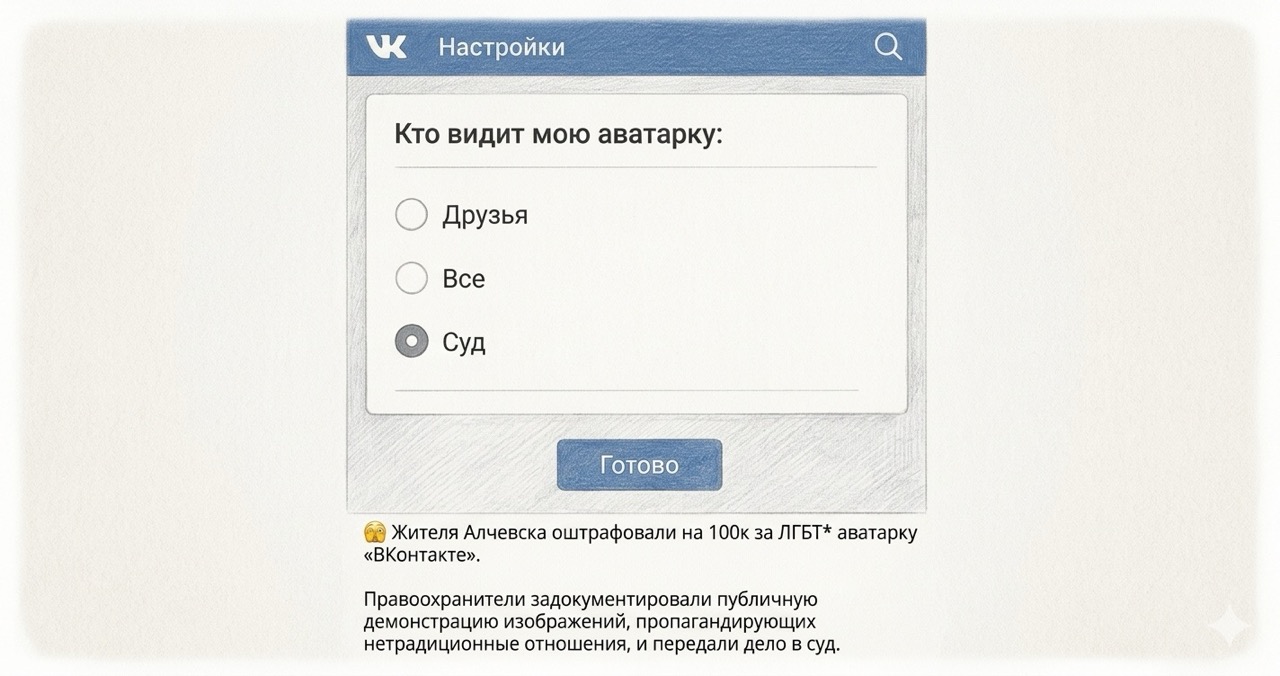 За інформацією окупаційних ресурсів, чоловіка звинуватили у «пропаганді нетрадиційних стосунків» після того, як під час моніторингу інтернету правоохоронці виявили відповідне зображення на його акаунті у соцмережі «ВКонтакте». Йдеться саме про аватарку користувача.