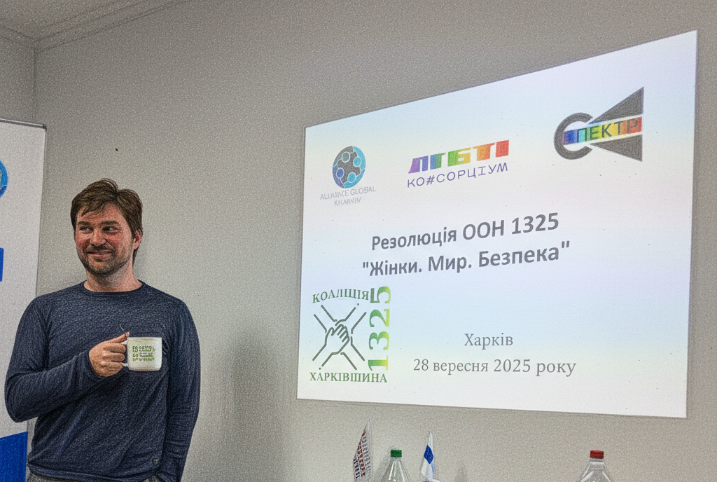 З нагоди 25-річчя Резолюції 1325 голова правління «Спектр Харків» Василь Маликов та член правління Пол Шваб провели освітню зустріч для ЛГБТІК+ спільноти Харкова. Учасники обговорили значення документу, принципи рівності та інклюзії, а також шляхи, як громади можуть долучатися до побудови миру й захисту прав людини.