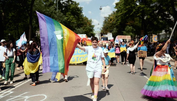 Вчора україн_ки разом з тисячами віденців виголошували підтримку Україні, заклики зупинити війну та підтримувати ЛГБТ+ спільноту України.