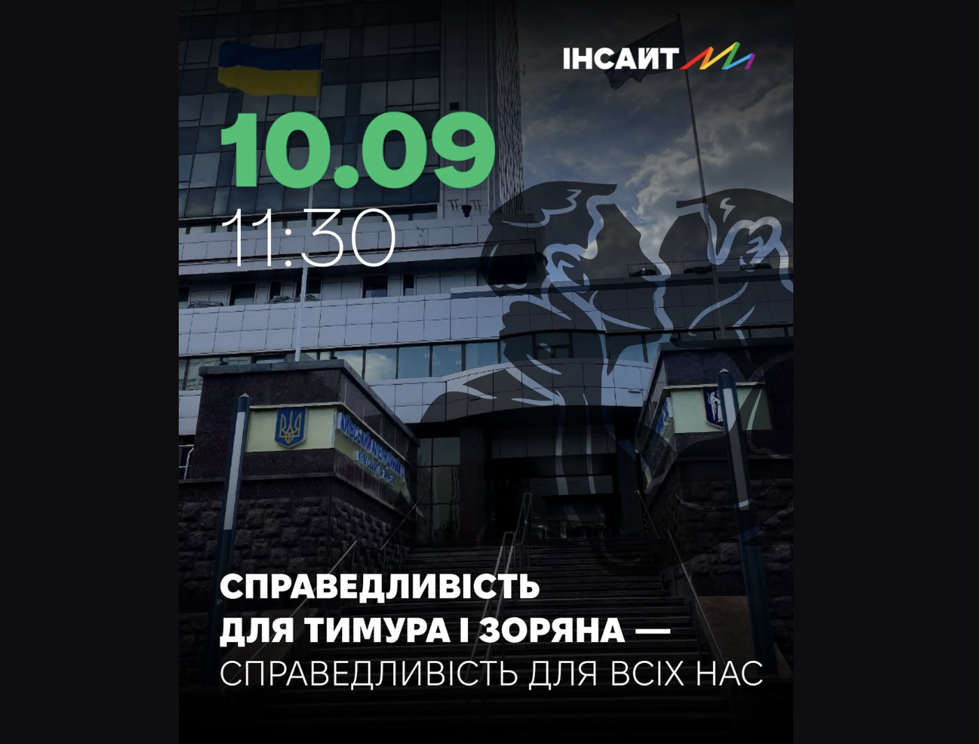 ГО «Інсайт» , що 10 вересня о 11:30 разом із партнерськими організаціями та ініціативами буде під стінами суду, щоб висловити підтримку парі та адвокатській команді.