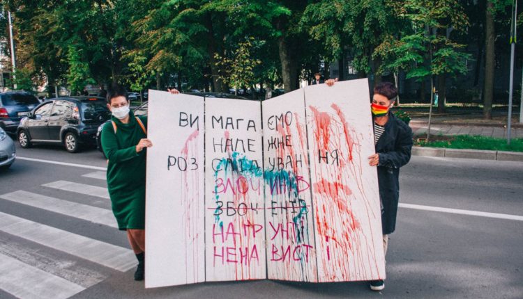 Справка SQ. Год назад, в начале сентября 2020-го, в Харькове на прайд-хаб – офис местного ЛГБТ-сообщества. Там били окна, разрисовывали стены, забрасывали вход яйцами, оставляли гомофобные надписи. По словам координаторки центра Станиславы Петлицы, за два года было совершено около 10 нападений на офис. При этом ни одно из этих дел не расследуется как правонарушение, совершенное на почве ненависти.