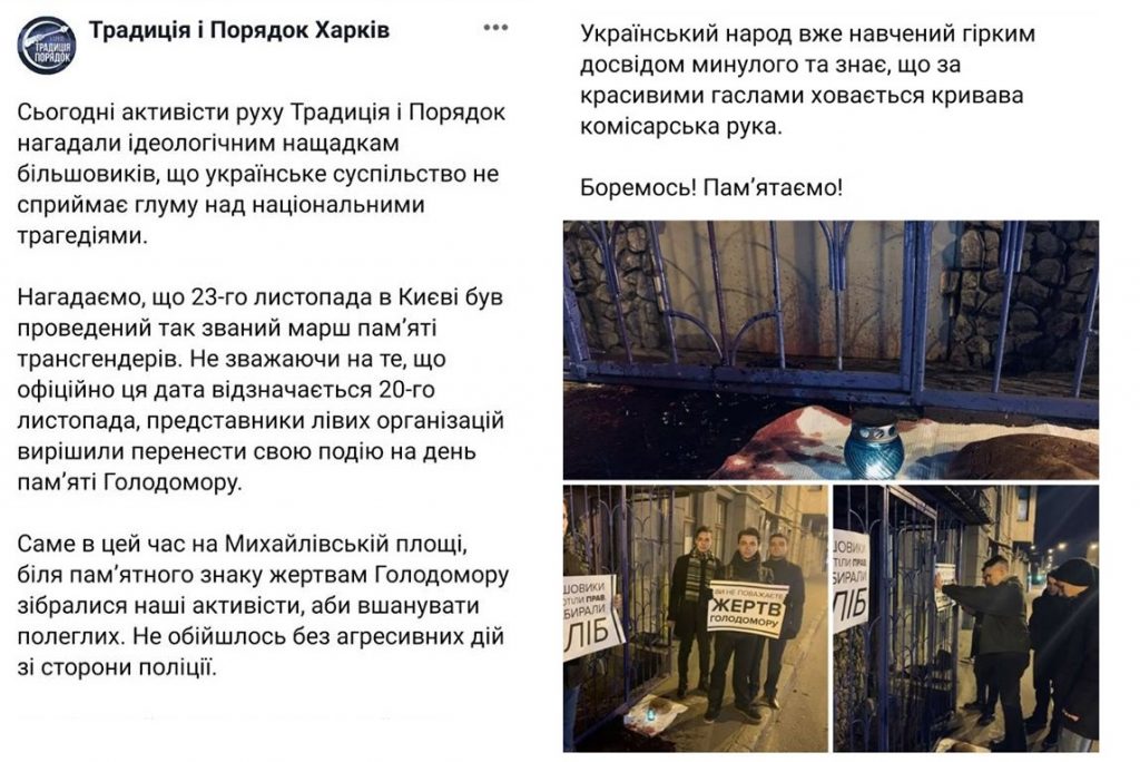 Впоследствии на странице харьковской ячейки ультраправого группировки “Традиция и порядок” появилось сообщение о нападении. Его члены взяли на себя ответственность за инцидент.
