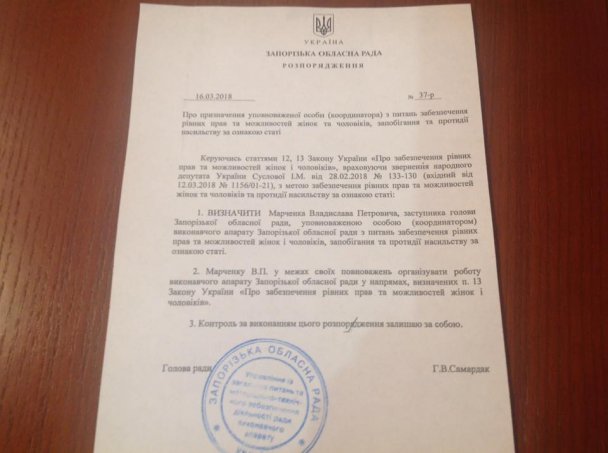 Фотокопию соответствующего документа-распоряжения, подписанного главой облсовета Григорием Самардаком на собственной странице в соцсети Facebook опубликовала депутат Татьяна Ковылина.