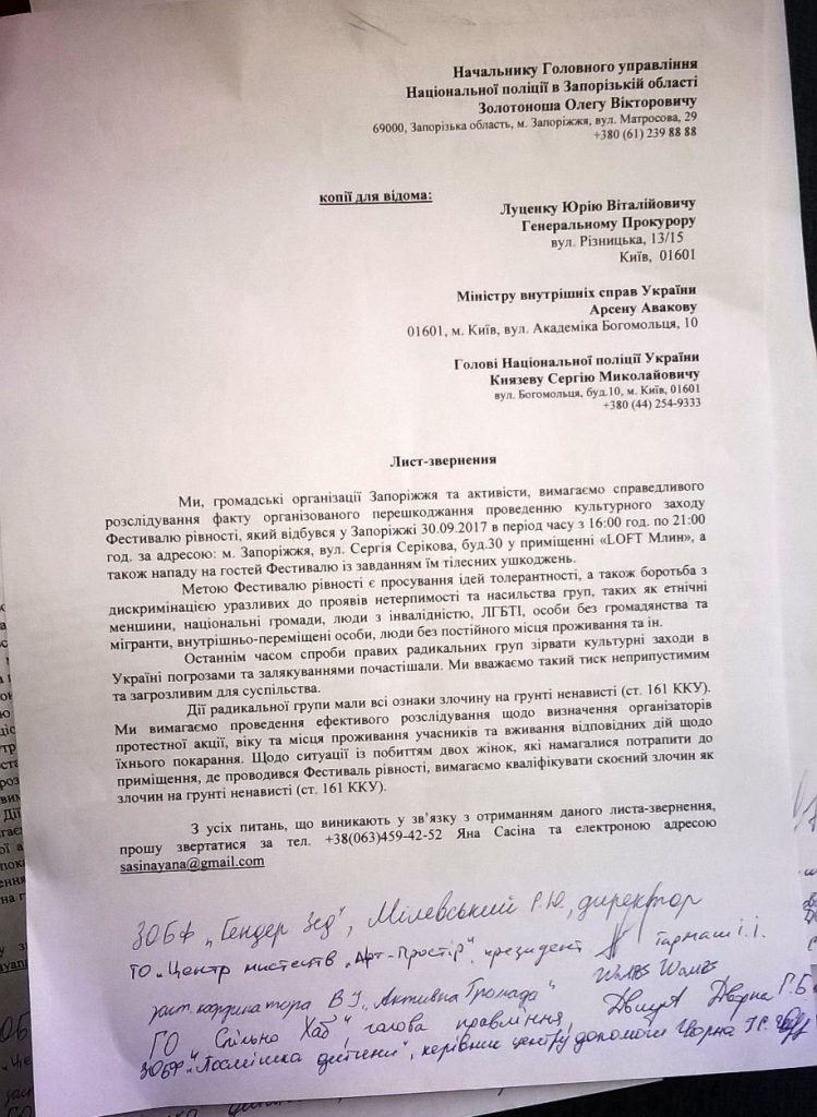 В Запорожье организаторы ЛГБТ-фестиваля озвучили свои требования