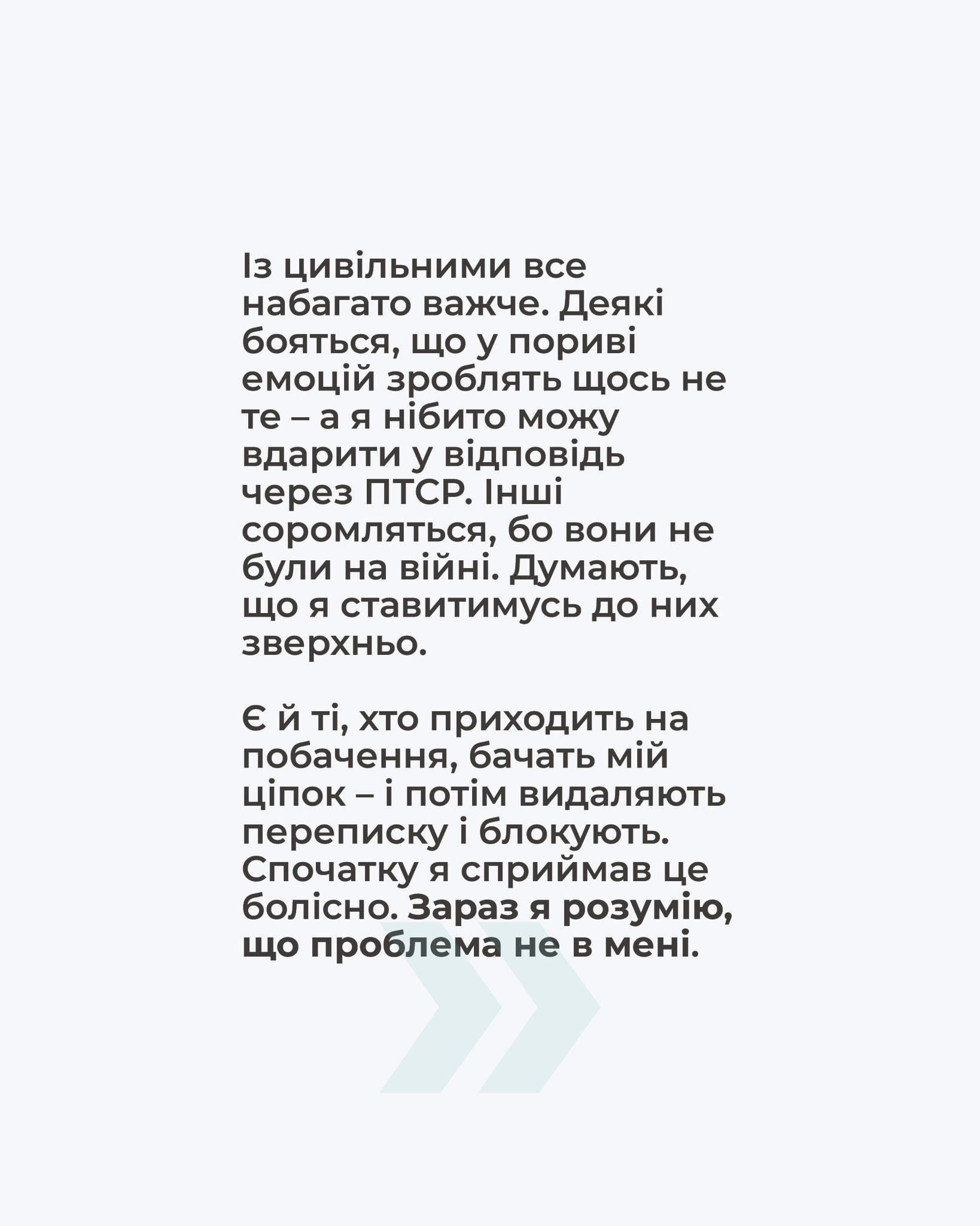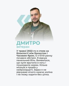 1️⃣Ветеран Дмитро, який на фронті отримав поранення ноги