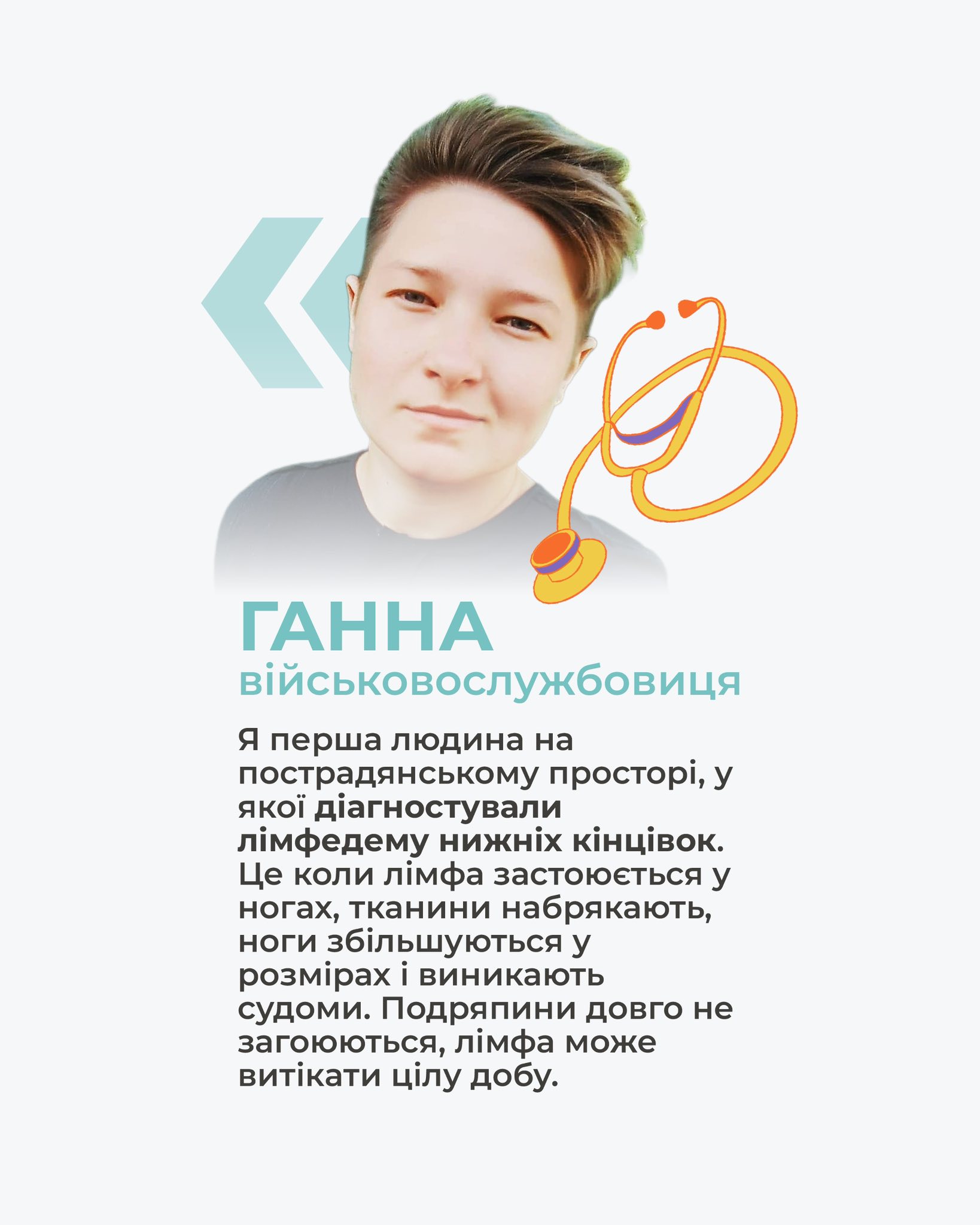 3️⃣Військовослужбовиця Ганна, у якої лімфедема нижніх кінцівок