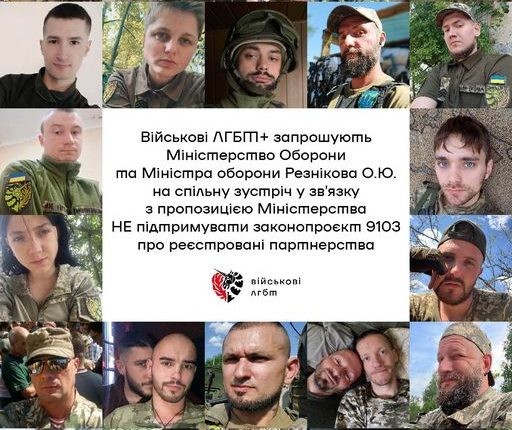 Військові ЛГБТ+ запрошують Міністерство Оборони та Міністра оборони Резнікова О.Ю. на спільну зустріч у звʼязку з пропозицією Міністерства НЕ підтримувати законопроєкт 9103 про реєстровані партнерства
