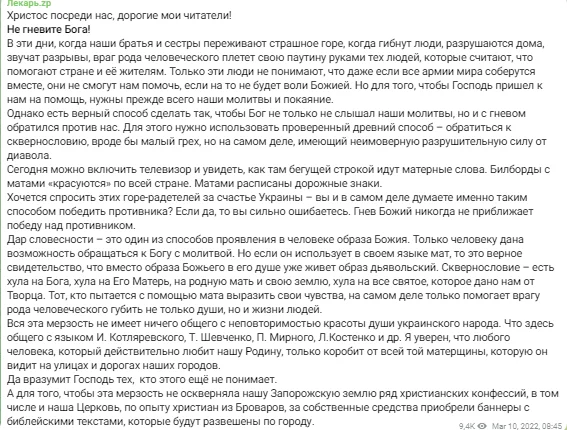У березні 2023 року церковника з Півдня України почало турбувати “справді важливе” для цього регіону питання. Це матюки, які “гнівлять Бога”. Мовляв, тому Господь не слухатиме молитов і навпаки усіх покарає.
