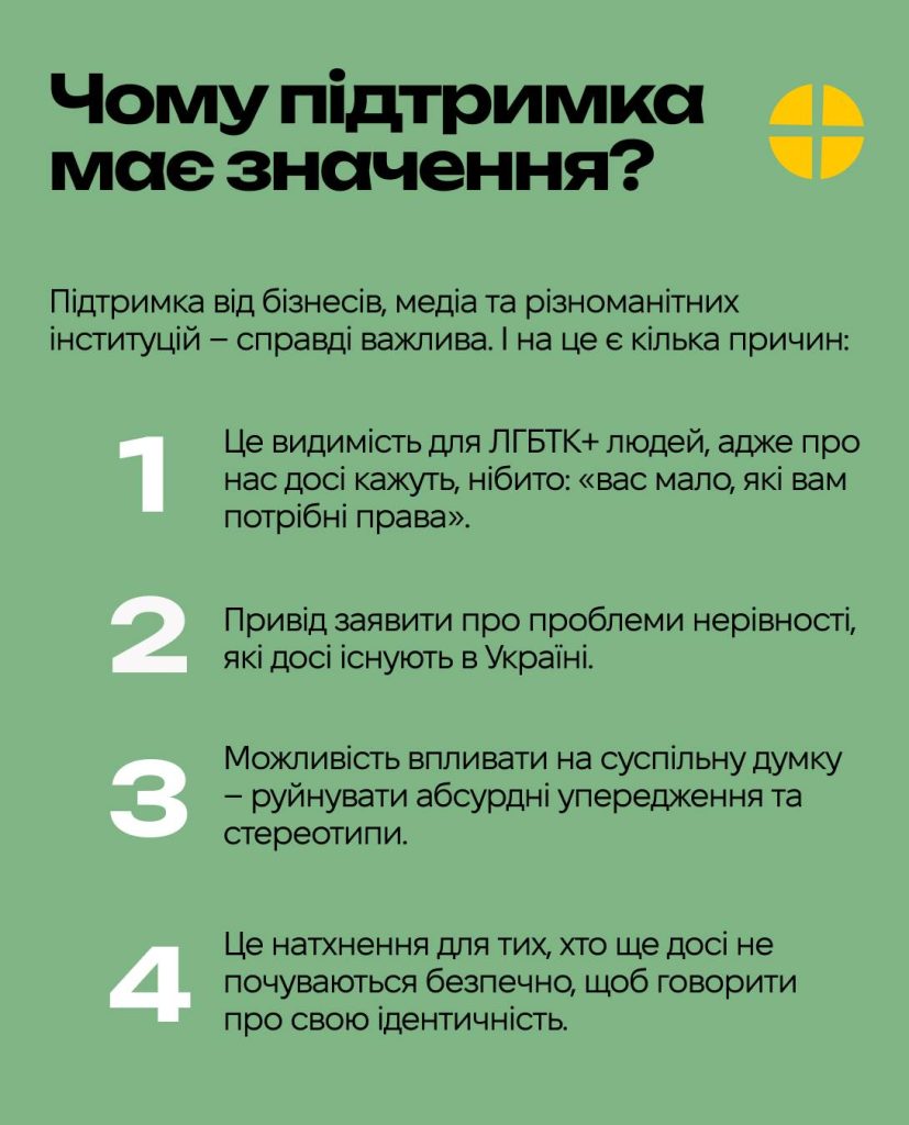 Іноді – це зміна аватару у соцмережах, іноді – допис з відкритою позицією. Деякі долучаються до інформаційних та креативних колаборацій. Хтось говорить про рівність та підтримку вперше, а хтось виступає публічно вже протягом багатьох років. Кожна дія має значення!