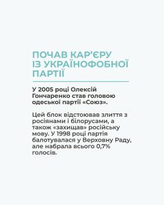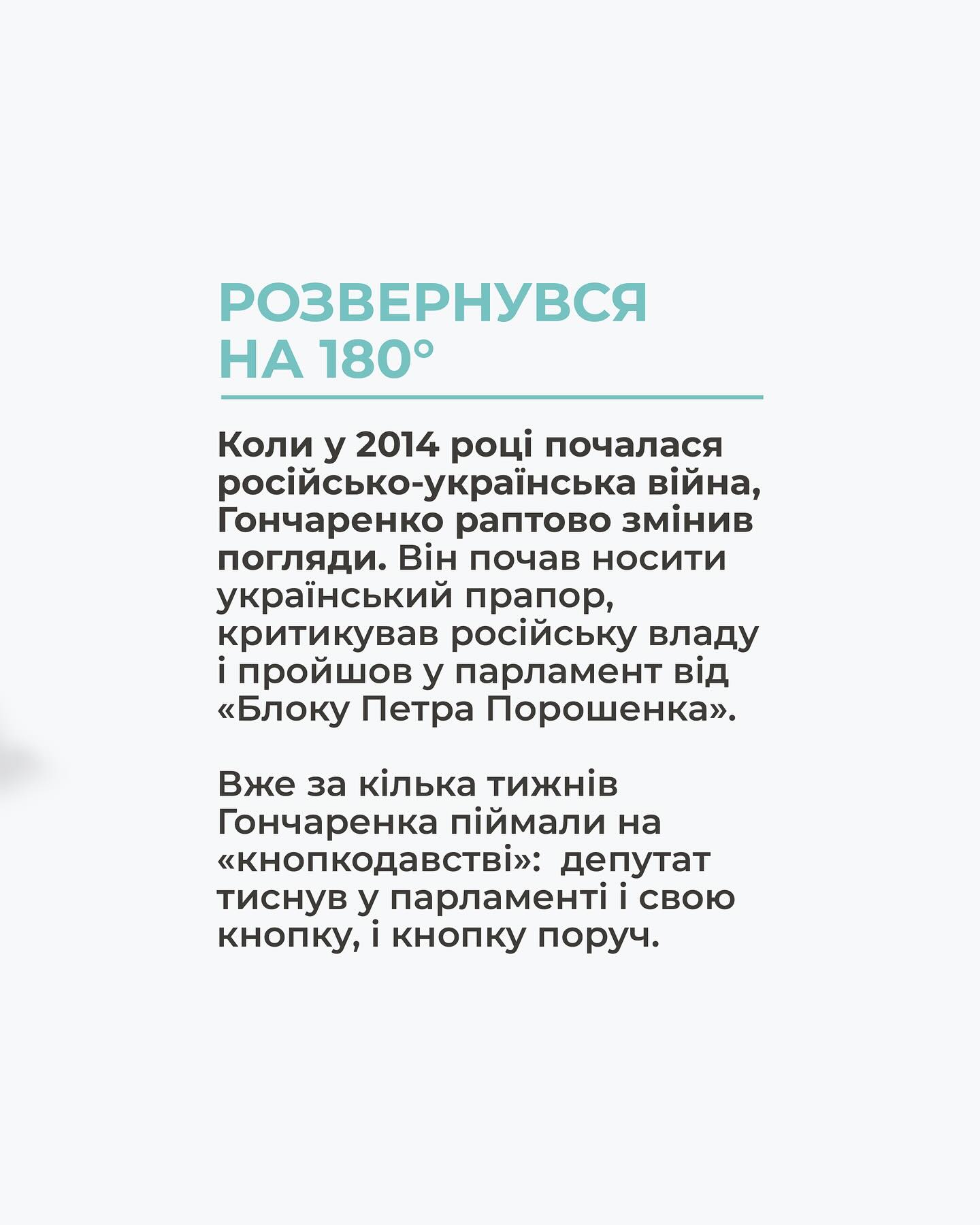 Олексій Гончаренко в політиці вже 20 років. Коли почалося повномасштабне вторгення, він став одним з найвідоміших депутатів: активно веде соцмережі, проводить прямі ефіри в тіктоці і робить включення з Ради. Також Гончаренко активно розповідає про Україну за кордоном і є членом Парламентської асамблеї Ради Європи.