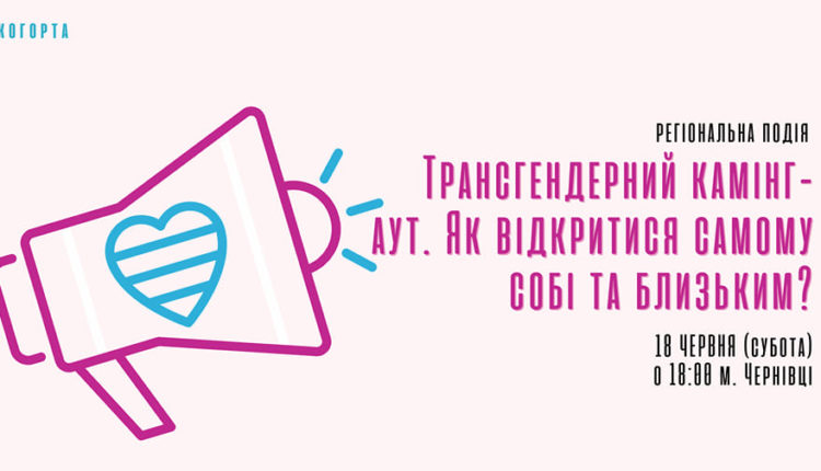 Команда ГО “Когорта” проведе захід для транс*людей та союзників “Трансгендерний камінг-аут. Як відкритися самому собі та близьким?” в Чернівцях.