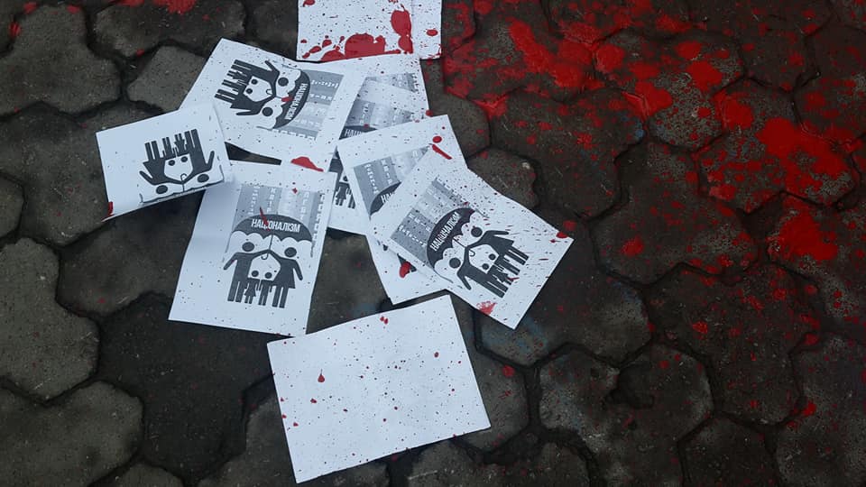Мирно завершить акцию не удалось – агрессивно настроенные люди атаковали участниц, бросив в них банки с красной краской и листовки о национализме. Пострадавшие обратились в городское отделении полиции и написали заявление. В результате нападения испорчены вещи активисток, Виталина получила ожог роговицы глаза.