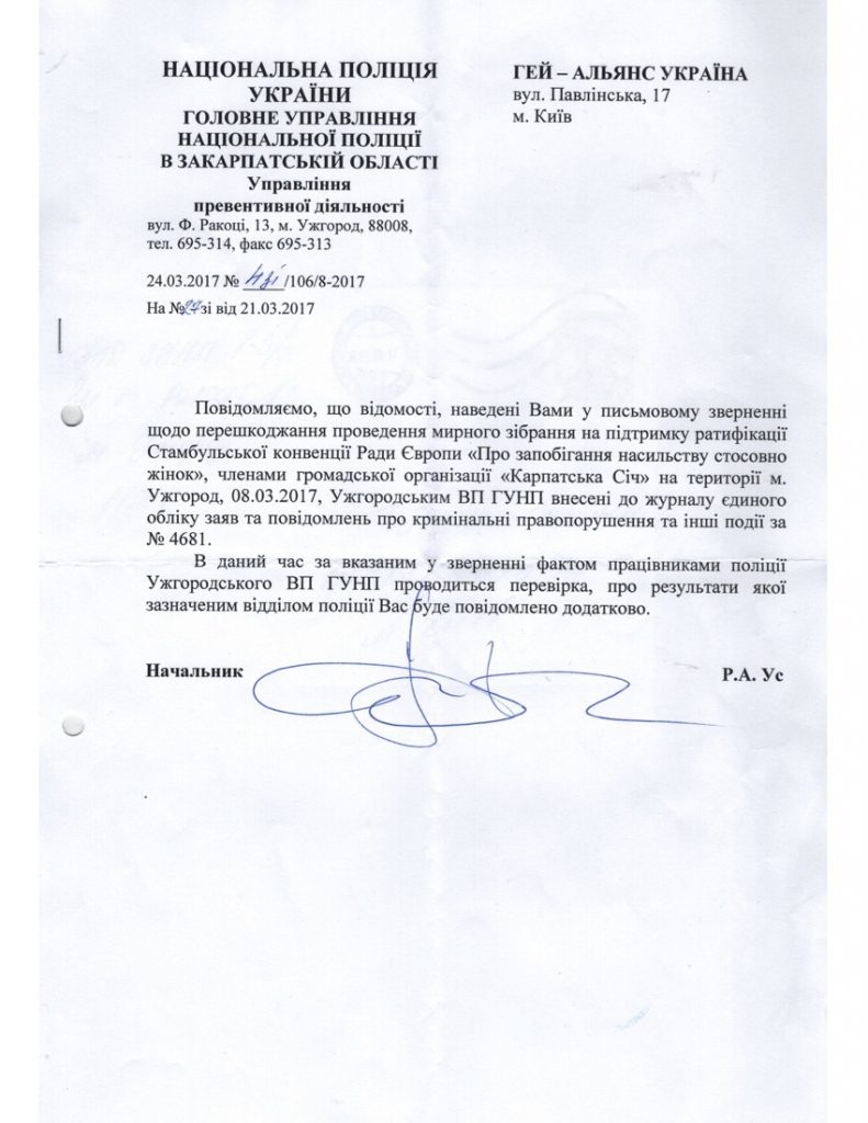 Заявление ВОО Гей-альянс Украина по ситуации с нападением на женский марш в Ужгороде