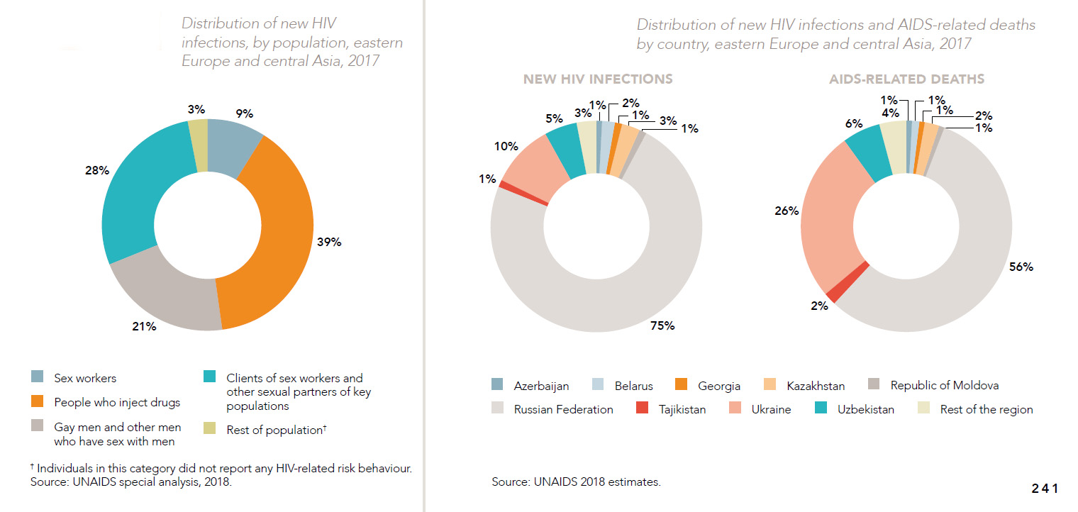 Отчет показывает, что на фоне успехов в направлении борьбы с ВИЧ Восточной и Южной Африки, где за 7 лет число новых ВИЧ+ сократилось почти на треть, эпидемия продолжает набирать обороты в странах Восточной Европы и Центральной Азии (ВЕЦА). В регионе количество новых случаев ВИЧ за последний год удвоилось.